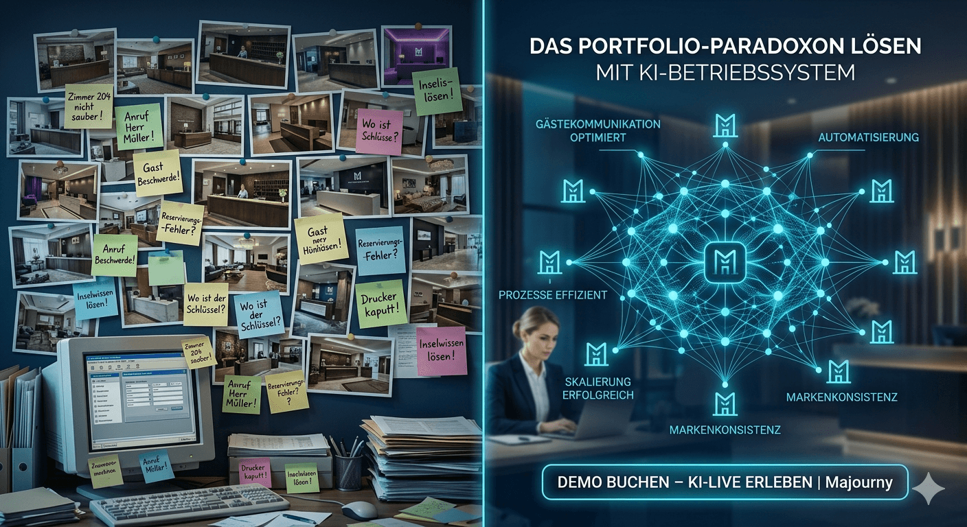 Es klingt wie ein Erfolg: ein zweites Haus eröffnet, ein drittes in Planung, das Portfolio wächst. Und dann, irgendwann, schleicht sich das Gefühl ein, dass irgendetwas nicht mehr stimmt. Gäste in Haus A bekommen eine andere Antwort auf dieselbe Frage als Gäste in Haus B. Das Frühstücksangebot wird in einem Betrieb digital vermarktet, im anderen liegt ein handgeschriebener Zettel an der Rezeption. Und das Upselling? Das hängt davon ab, wer gerade Dienst hat. Das ist das Portfolio-Paradoxon: Je größer ein Hotelbetrieb wird, desto schwerer wird es, die Qualität zu halten, die den ersten Erfolg ausgemacht hat. Mehr Zimmer bedeuten nicht automatisch mehr Konsistenz. Häufig ist das Gegenteil der Fall. Dieser Artikel zeigt, warum dieses Problem struktureller Natur ist – und wie Hoteliers, ob mit einem Haus oder mit zehn, es mit dem richtigen KI-Ansatz dauerhaft lösen können.